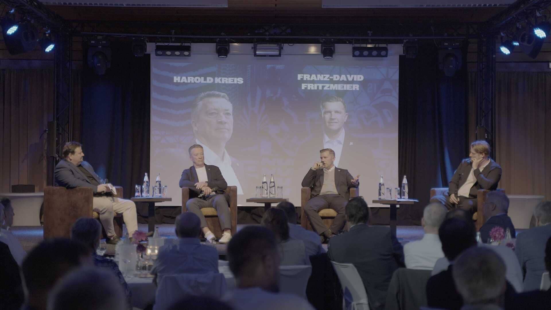 Ein weiterer Höhepunkt des Abends war die abschließende Interviewrunde mit Harold Kreis, Headcoach der deutschen Nationalmannschaft, und Roosters-Sportdirektor Franz David Fritzmeier. Gemeinsam mit Mirko Heintz und Felix Dötsch sprachen sie über die anstehende DEL-Saison, die Arbeit bei der Nationalmannschaft sowie die internationalen Höhepunkte des kommenden Jahres: die Olympischen Winterspiele 2026 in Italien und die Eishockey-Weltmeisterschaft 2026 in Zürich. Kreis gewährte Einblick in seine tägliche Arbeit, betonte die Bedeutung der Nachwuchsförderung und die Disziplin der Top-Spieler. Statt eines klaren Saisonziels stand für beide die kontinuierliche Weiterentwicklung im Vordergrund.