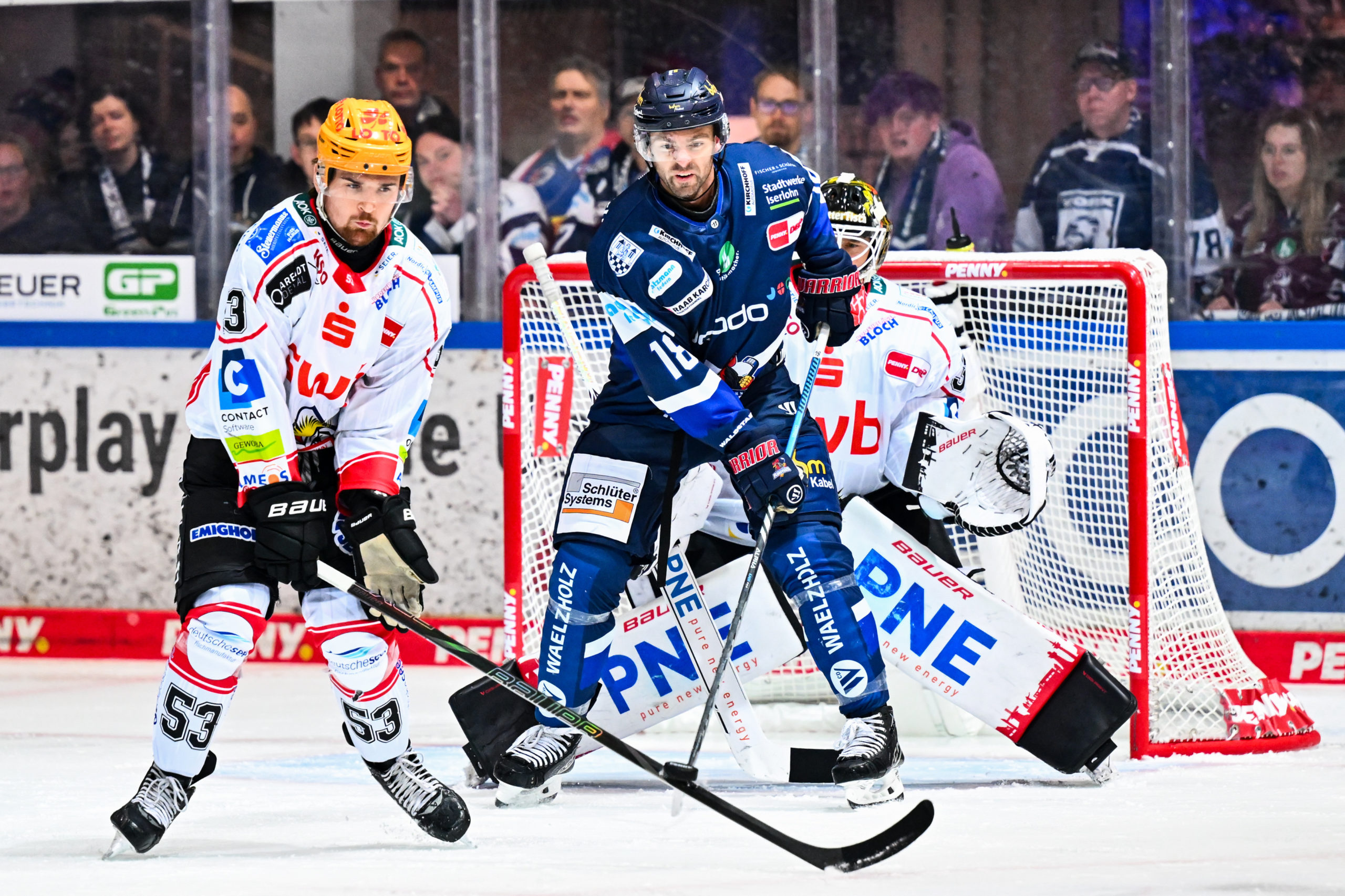 Die Partie begann mit hohem Druck der Pinguins, die die Roosters früh in deren Zone festsetzten. Iserlohn versuchte, mit schnellen Gegenstößen für Entlastung zu sorgen, kam aber nur selten gefährlich zum Abschluss. Ein erstes Powerplay in der 6. Minute brachte zwar gute Gelegenheiten, blieb aber ungenutzt – und im direkten Gegenzug schlugen die Gäste zu: Brugisser zog von der blauen Linie ab, Mauermann fälschte unhaltbar zum 0:1 ab (7.). Die Antwort der Gastgeber folgte: Fischbuch setzte Cornel sehenswert in Szene, der zum 1:1 ausglich (9.). Doch die Freude währte nur kurz. Erneut Mauermann stellte mit seinem zweiten Treffer die Gästeführung her (10.) und hatte noch vor der Pause seinen dritten Streich parat (20.). Bremerhaven war zwar optisch überlegen, den Toren gingen aber individuelle Fehler voraus, die man sich gegen die Pinguins an diesem Abend nicht leisten durfte. Trotz einer engagierten Abwehrleistung der Roosters war das 1:3 nach 20 Minuten dementsprechend kein verdienter Zwischenstand.
