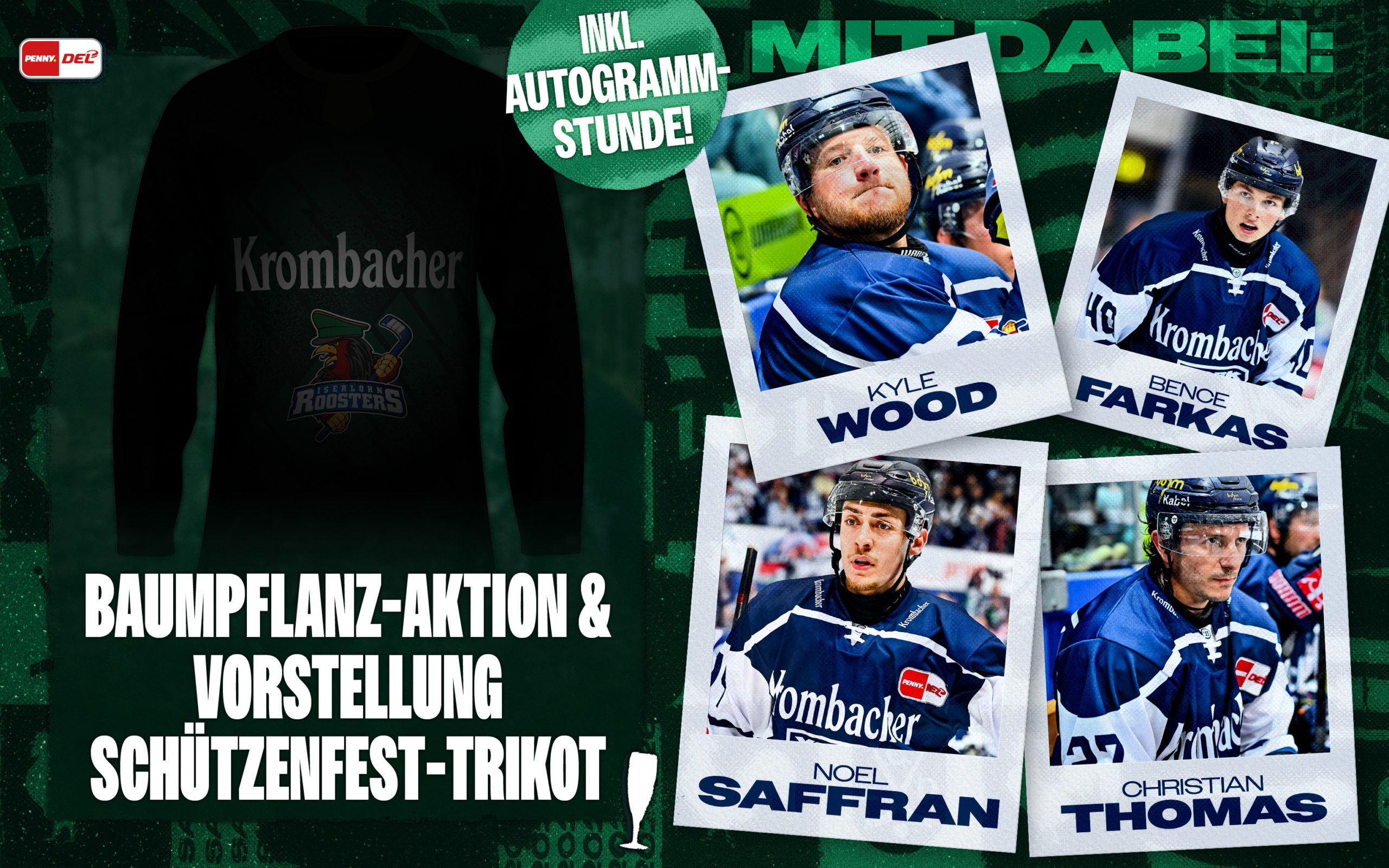Seid also dabei, tut etwas Gutes für die Umwelt, nutzt die Chance, mit unseren Roosters-Profis ins Gespräch zu kommen und sichert Euch die exklusive Chance auf eines der Schützenfesttrikots. Krombacher belohnt darüber hinaus alle Helferinnen und Helfer mit einer Kiste aus ihrem Sortiment!