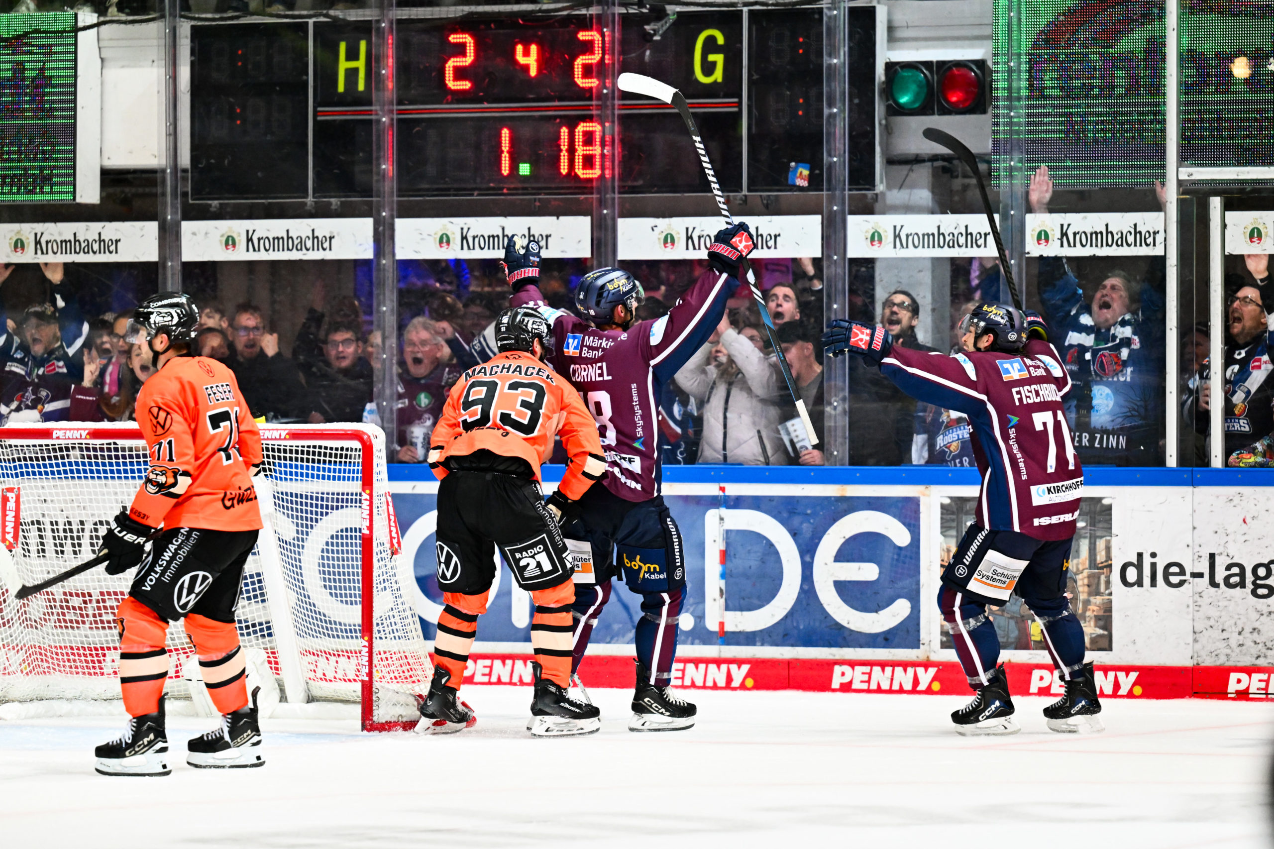 Die Iserlohn Roosters haben sich in einem intensiven Duell gegen die Grizzlys Wolfsburg mit 3:2 nach Verlängerung durchgesetzt. Nach einem offenen Schlagabtausch in der regulären Spielzeit sorgte Eric Cornel in der Overtime für den umjubelten Siegtreffer am Seilersee.